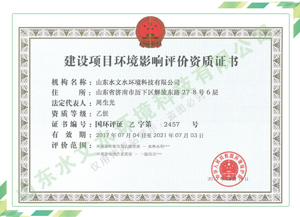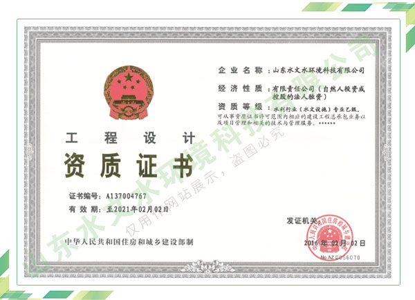 公司擁有水利工程設(shè)計、水土保持、水文水資源調(diào)查評價、水資源論證、建設(shè)項目環(huán)境影響評價、市政公用工程施工總承包、水利水電工程施工總承包、電子與智能化工程專業(yè)承包等資質(zhì),2017年通過質(zhì)量管理體系、環(huán)境管理體系、職業(yè)健康安全管理體系認證;2020年被評為國家級高新技術(shù)企業(yè),同年被中國水利企業(yè)協(xié)會推薦為第一批“合同節(jié)水服務(wù)企業(yè)”;2021年被山東省、濟南市評為 “專精特新”中小企業(yè)。業(yè)務(wù)范圍涉及水利工程設(shè)計;節(jié)水設(shè)計、改造、水平衡測試;山洪災(zāi)害調(diào)查;城市水資源調(diào)查評價;建設(shè)項目水土保持方案編制、監(jiān)測、驗收、水土保持規(guī)劃;水安全保障規(guī)劃、建設(shè)項目水資源論證、規(guī)劃水資源論證;建設(shè)項目環(huán)境影響評價;入河排污口論證;防洪影響評價;市政公用工程施工、水利水電工程施工、電子與智能化工程施工等。